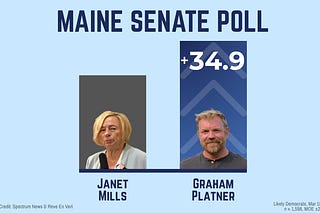 Graham Platner holds a 34.9 point lead ahead of Janet Mills in a primary matchup.